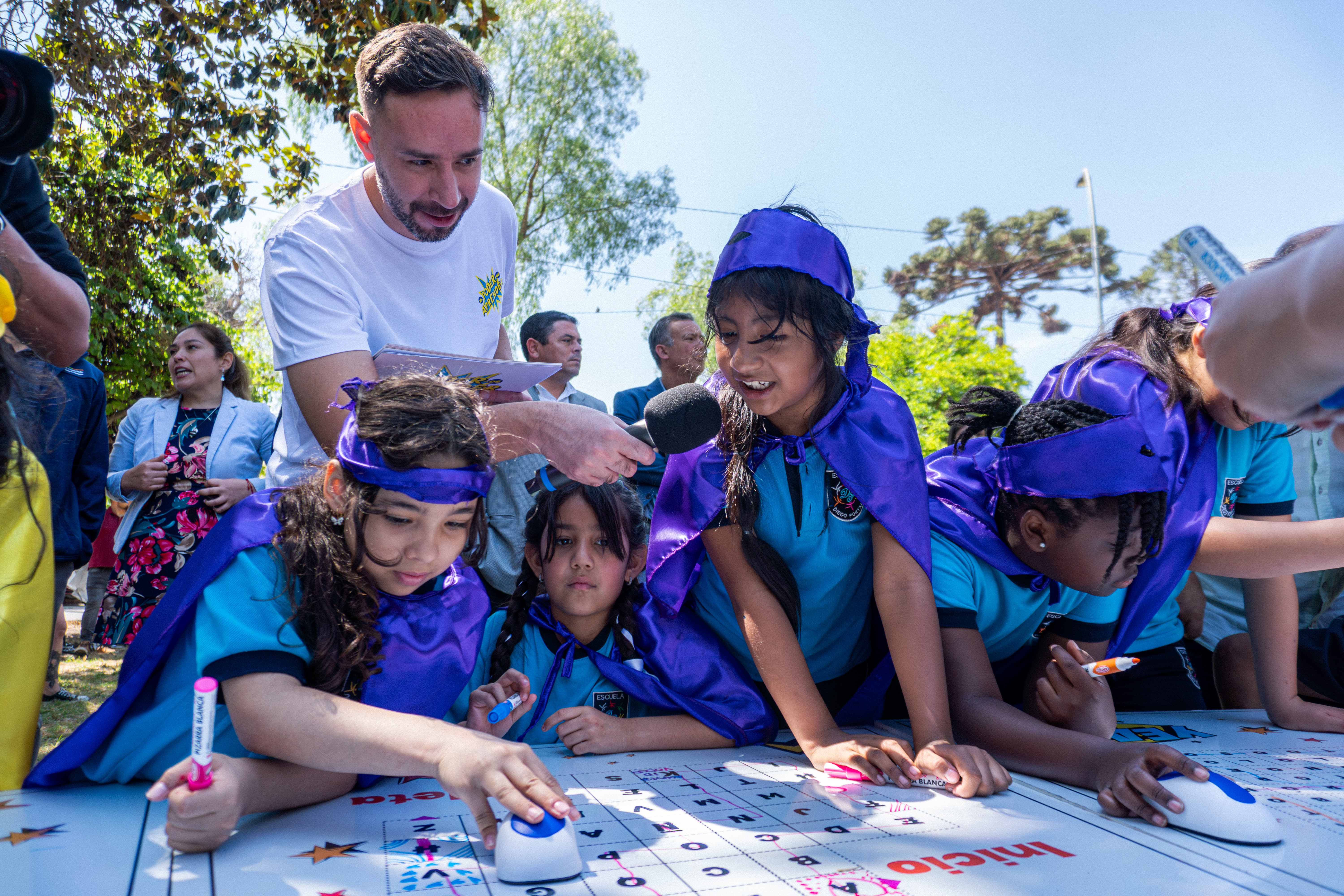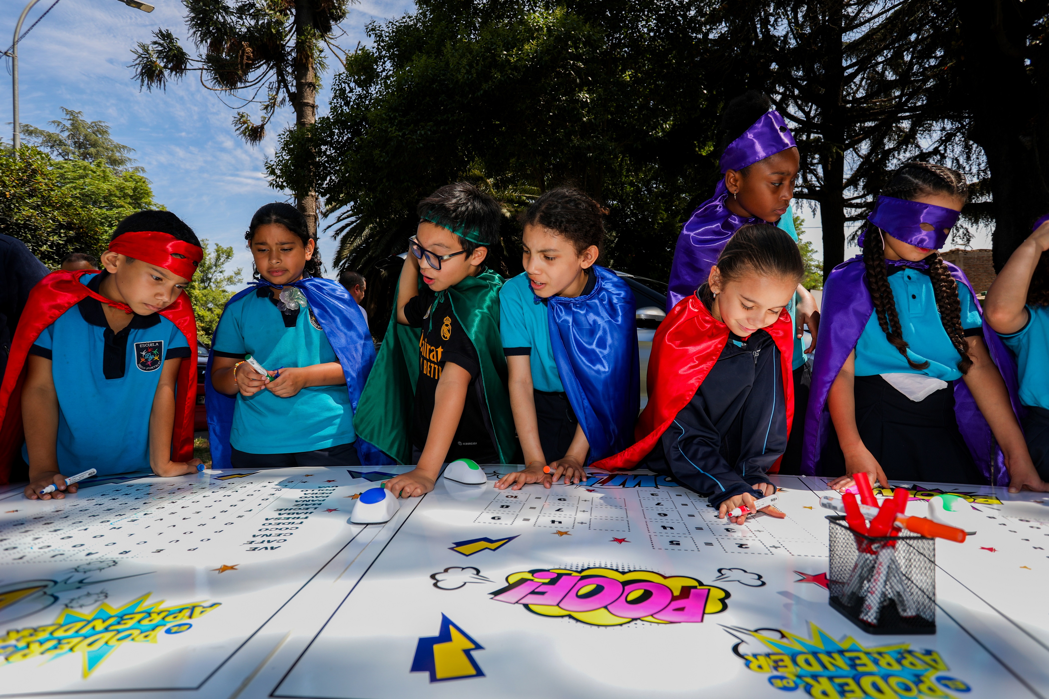 Santiago, 27 de noviembre de 2025.- “Los aprendizajes no ocurren solo dentro de la sala de clases, suceden en todo momento y en todo lugar”. Bajo esa premisa, el Ministerio de Educación presentó esta mañana la campaña de fortalecimiento de aprendizajes “El poder de aprender”. La actividad reunió a más de 60 niños y niñas de la Escuela Diego Portales de Quinta Normal, en un espacio que se transformó en un aula abierta en la que las niñas y niños disfrutaron, vestidos con capas y antifaces, una dinámica de juegos colaborativos, con desafíos de matemática y lenguaje en un tablero gigante. De esta manera, estos pequeños superhéroes pudieron reconocer y potenciar sus superpoderes: leer, escribir, sumar y restar.