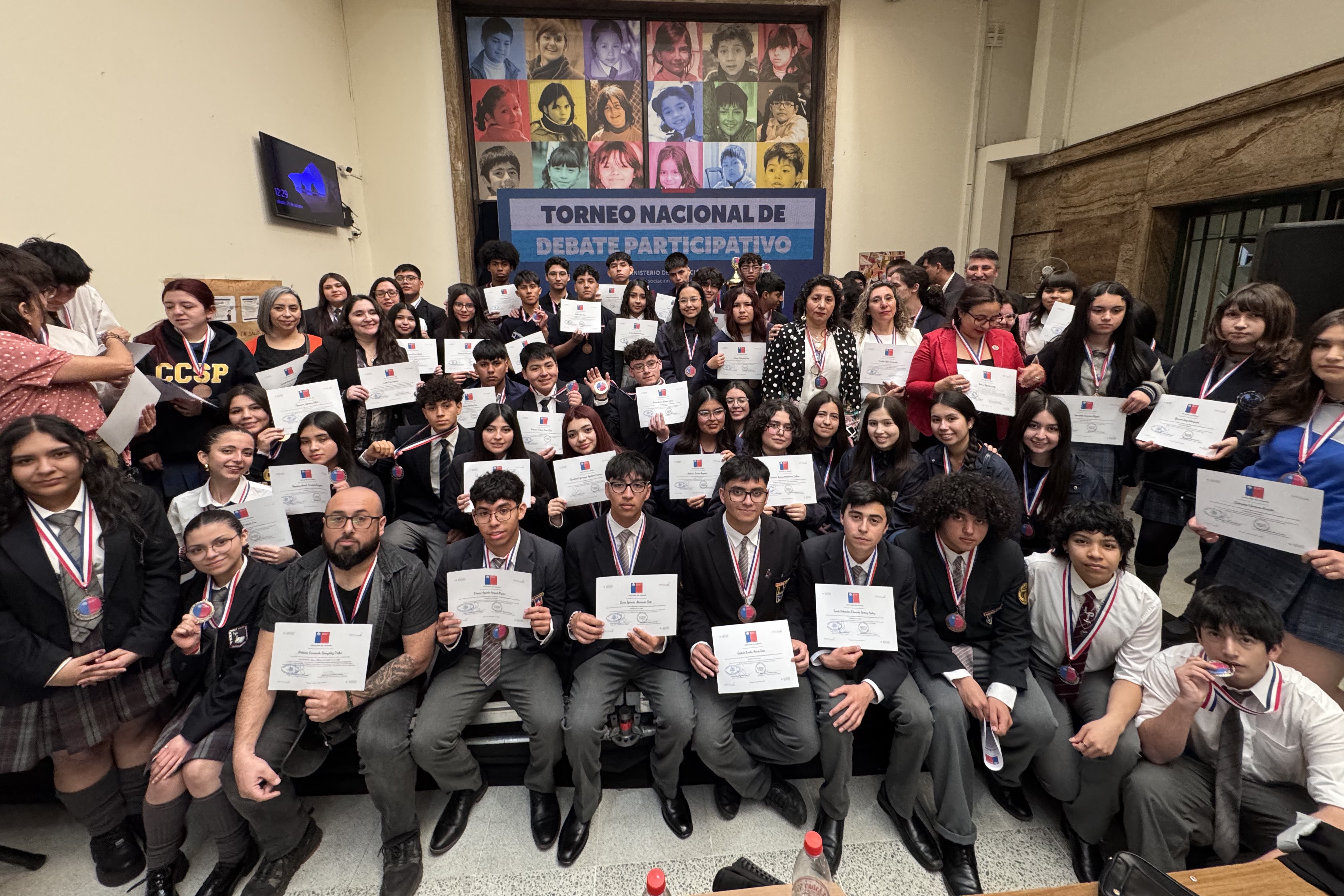 La jornada final se desarrolló en el Hall Central del Ministerio de Educación, tras dos días de actividades en que cerca de 70 estudiantes de séptimo básico a cuarto medio debatieron sobre temas de interés público, demostrando habilidades de argumentación, análisis crítico, escucha activa y trabajo colaborativo.