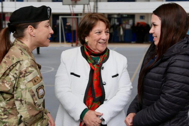 - La ministra de Defensa, Adriana Delpiano, y las subsecretarias de Educación, Alejandra Arratia, y de la Mujer, Claudia Donaire, participaron en un encuentro con estudiantes del Instituto Superior de Comercio, en San Miguel, donde destacaron el creciente rol de las mujeres en las Fuerzas Armadas.