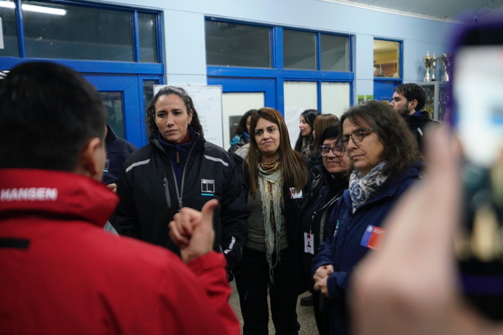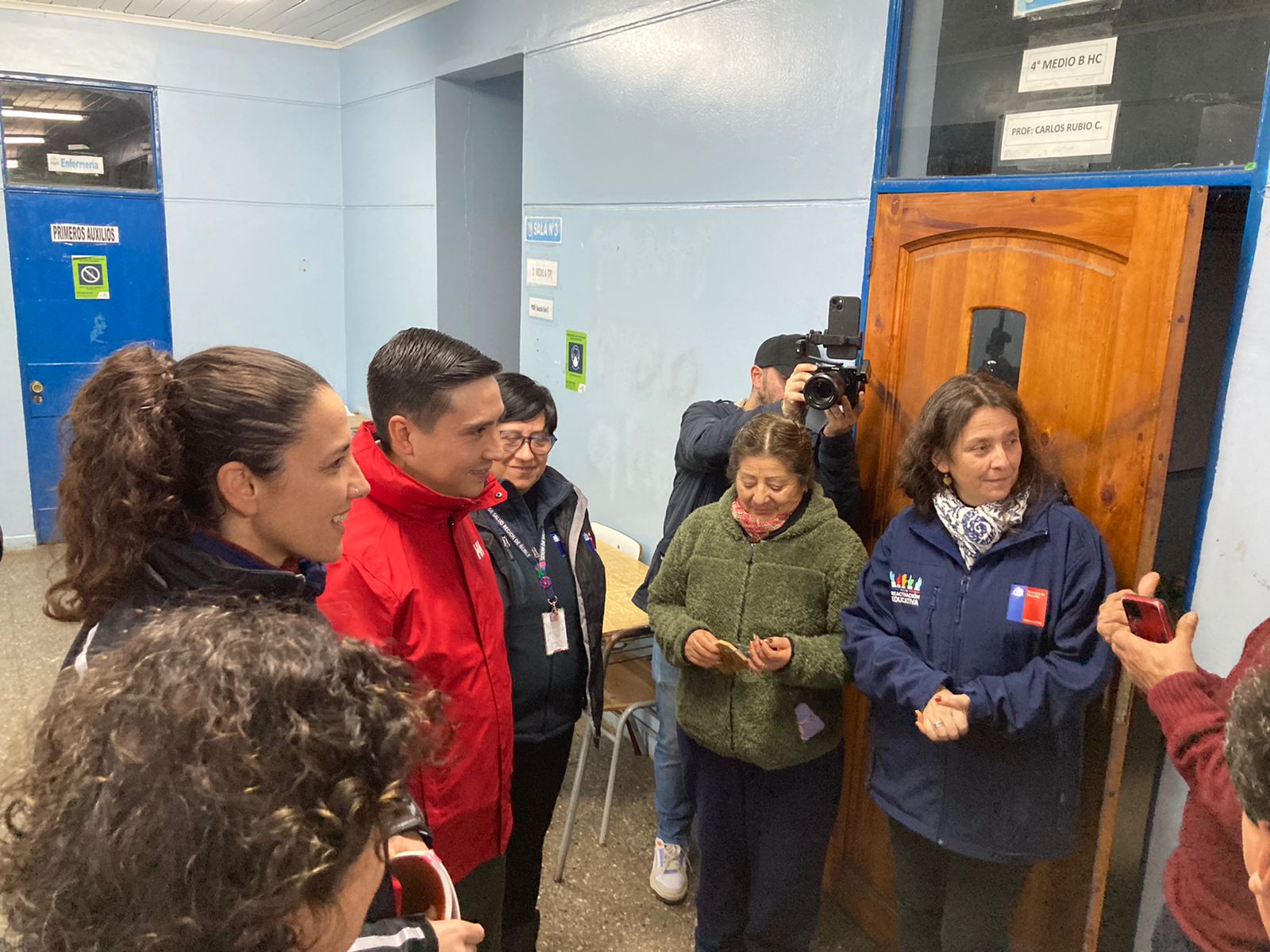 Posteriormente, la subsecretaría de Educación se trasladó a la Región de Ñuble para visitar el Liceo Bicentenario San Gregorio, habilitado como albergue en la comuna de Ñiquén. En la ocasión, la autoridad, junto con la subsecretaria de Salud, Andrea Albagli; la ministra del Medio Ambiente, Maisa Rojas; y el seremi de Educación, César Riquelme, hicieron un recorrido por el establecimiento para conversar con las familias afectadas por el sistema frontal.